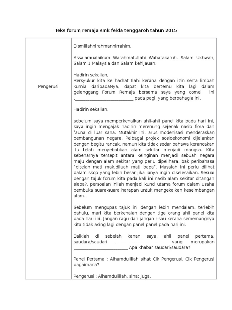 Teks Forum Pencemaran Alam Sekitar Teks Forum Pencemaran Alam Sekitar Pengerusi Faris Irfan Bin Shamsul Aznan Ahli Panel Pertama Norizman Bin Course Hero from www.coursehero.com Pencemaran merupakan kemasukan bahan pencemar seperti bahan kimia, hingar, haba, cahaya dan tenaga kedalam alam sekitar yang mengakibatkan kesan yang memusnahkan sehingga membahayakan kesihatan manusia, mengancam sumber alam dan. Di negara kita misalnya penggunaan kereta masa kini telah bertambah dengan begitu pesat berbanding tahun 1950an dan 1960an dahulu. P engenalan pencemaran bunyi merupakan pencemaran yang mengganggu kehidupan manusia. Tajuk forum hari ini ialah pencemaran alam sekitar. Pencemaran alam sekitar sudah wujud sejak dari zaman batu lagi apabila manusia mula belajar untuk menghidupkan api. Akibat meminum air yang tercemar, manusia akan dijangkiti penyakit menular, penyakit ginjal, artritis. Korang yang baca ni sihat tak? Hampir semua aktiviti yang dilakukan memerlukan air.