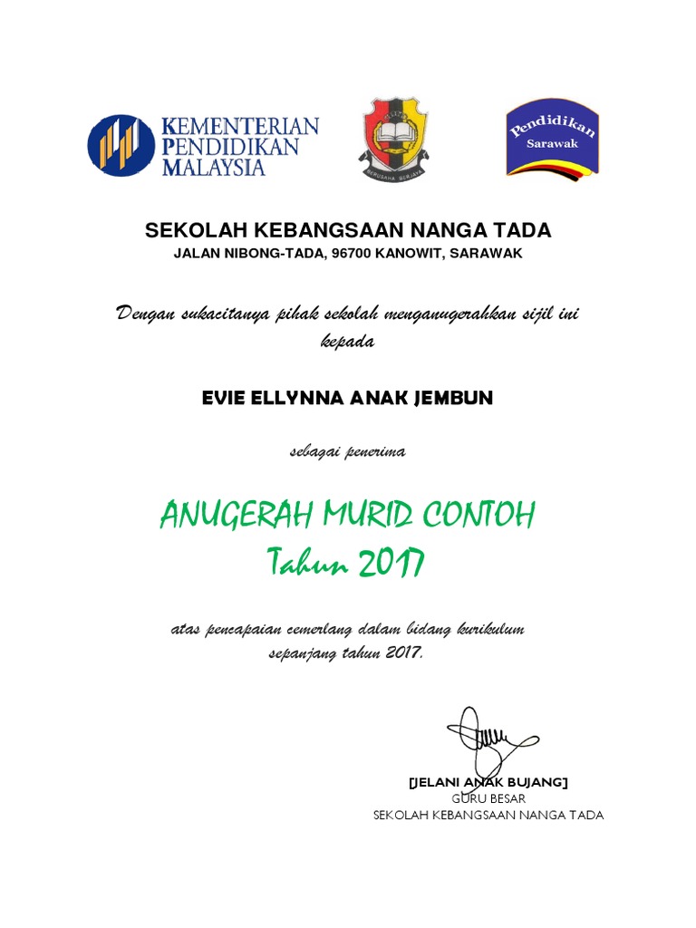 0 ratings0% found this document useful (0 votes). Peringkat awal sekolah menguasai pembelajaran. Contoh sijil by eioskdm manir 337 views. Sekolah menengah kebangsaan sri gading telah melahirkan seorang pelajar cemerlang orang kelainan upaya (oku) dengan memperolehi keputusan 8a 1c dalam sijil pelajaran malaysia yang diumumkan. Stephen kay (kanan) menyampaikan sijil kepada salah seorang pelajar yang diraikan di majlis berkenaan.